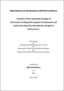 Baales, Johanna: Interaction of surfactants with leaf surfaces : Analysis of time-dependent changes in leaf surface wetting, foliar uptake of surfactants and surfactant-induced transcriptomic changes in barley leaves. - Bonn, 2022. - Dissertation, Rheinische Friedrich-Wilhelms-Universität Bonn.