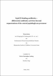 Ludwig, Kevin Christopher: Lipid II-binding antibiotics – differential antibiotic activities beyond sequestration of the central peptidoglycan precursor. - Bonn, 2023. - Dissertation, Rheinische Friedrich-Wilhelms-Universität Bonn.