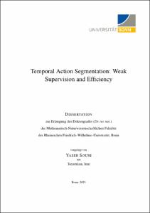 Souri, Yaser: Temporal Action Segmentation: Weak Supervision and Efficiency. - Bonn, 2023. - Dissertation, Rheinische Friedrich-Wilhelms-Universität Bonn.