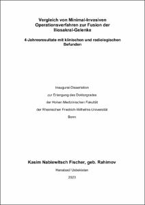 Fischer, Kasim Nabiewitsch: Vergleich von Minimal-Invasiven Operationsverfahren zur Fusion der Iliosakral- Gelenke : 4-Jahresresultate mit klinischen und radiologischen Befunden. - Bonn, 2023. - Dissertation, Rheinische Friedrich-Wilhelms-Universität Bonn.