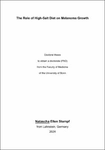 Stumpf, Natascha Ellen: The Role of High-Salt Diet on Melanoma Growth. - Bonn, 2024. - Dissertation, Rheinische Friedrich-Wilhelms-Universität Bonn.