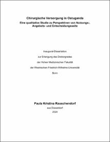 Rauschendorf, Paula Kristina: Chirurgische Versorgung in Ostuganda : Eine qualitative Studie zu Perspektiven von Nutzungs-, Angebots- und Entscheidungsseite. - Bonn, 2024. - Dissertation, Rheinische Friedrich-Wilhelms-Universität Bonn.