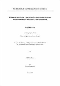 Rana, Md. Sohel: Temporary migration: Characteristics, livelihood effects, and destination choices in northern rural Bangladesh. - Bonn, 2025. - Dissertation, Rheinische Friedrich-Wilhelms-Universität Bonn.