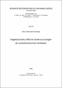 Freiberg, Horst-Michael (1985)An verschiedenen Vulkanen Süd-Chiles (Vulkan Llaima, Quetropillan, Mocho-Choshuenco, Puyehue, Antillanca, Osorno, Puntiagudo und Cerro Riggi) wurden von 1980 bis 1982 die andin verbreiteten Pflanzen gesellschaften soziologisch ... -