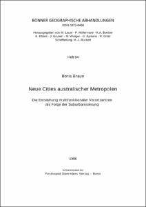 Braun, Boris (1996)Wie in zahlreichen Metropolen anderer Industrienationen lassen sich auch in den größeren australischen Verdichtungsräumen Dekonzentrationsprozesse verschiedener ökonomischer Aktivitäten betrachten. Im Hinblick auf die ... -