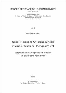 Richter, Michael (1979)Die geoökologischen Untersuchungen im Val Vegorness finden ihren Anschluß an bereits durchgeführte Arbeiten, die den Rückgang der Almwirtschaft im gesamten Verzascatal behandeln (M. RICHTER, 1975). Als Ausgangspunkt für ... -
