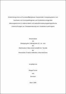 title = {Entwicklung eines auf Kunststoffpolymeren basierenden Analysesystems zum Nachweis von humanpathogenen und Verderbnis erregenden Mikroorganismen in Lebensmitteln und weiterführende gruppenspezifische Untersuchungen zur Charakterisierung von Clostridium perfringens},