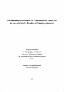 Kirchhofer, Daniel: Funktionelle Beeinträchtigung durch Chiasmasyndrome vor und nach der transsphenoidalen Operation von Hypophysenadenomen. - Bonn, 2009. - Dissertation, Rheinische Friedrich-Wilhelms-Universität Bonn.