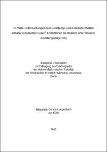 Langenbach, Alexander Dennis: In-Vitro-Untersuchungen zum Belastungs- und Frakturverhalten adhäsiv verankerter Cerec® Endokronen an Molaren unter linearer Belastungssteigerung. - Bonn, 2011. - Dissertation, Rheinische Friedrich-Wilhelms-Universität Bonn.
