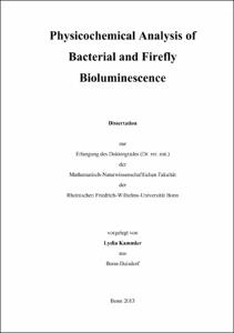 Kammler, Lydia: Physicochemical Analysis of Bacterial and Firefly Bioluminescence. - Bonn, 2013. - Dissertation, Rheinische Friedrich-Wilhelms-Universität Bonn.