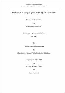 Tikam, Kanitta: Evaluation of pangola grass as forage for ruminants. - Bonn, 2014. - Dissertation, Rheinische Friedrich-Wilhelms-Universität Bonn.