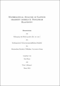 Runa, Eris: Mathematical Analysis of Lattice gradient models & Nonlinear Elasticity. - Bonn, 2015. - Dissertation, Rheinische Friedrich-Wilhelms-Universität Bonn.