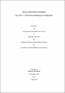 Shridhar, Naveen: Novel vaccination strategies for CD4+ T cell immunotherapy of melanoma. - Bonn, 2019. - Dissertation, Rheinische Friedrich-Wilhelms-Universität Bonn.