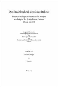 Siepe, Nadine: Die Erzähltechnik des Silius Italicus : Eine narratologisch-intertextuelle Analyse am Beispiel der Schlacht von Cannae (8,622-10,577). - Bonn, 2019. - Dissertation, Rheinische Friedrich-Wilhelms-Universität Bonn.