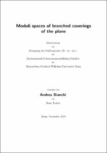 Bianchi, Andrea: Moduli spaces of branched coverings of the plane. - Bonn, 2020. - Dissertation, Rheinische Friedrich-Wilhelms-Universität Bonn.