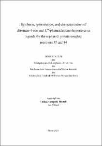 Wendt, Lukas Leopold: Synthesis, optimization, and characterization of chromen-4-one and 1,7-phenanthroline derivatives as ligands for the orphan G protein-coupled receptors 35 and 84. - Bonn, 2021. - Dissertation, Rheinische Friedrich-Wilhelms-Universität Bonn.