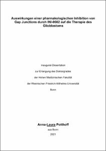 Potthoff, Anna-Laura: Auswirkungen einer pharmakologischen Inhibition von Gap Junctions durch INI-0602 auf die Therapie des Glioblastoms. - Bonn, 2021. - Dissertation, Rheinische Friedrich-Wilhelms-Universität Bonn.